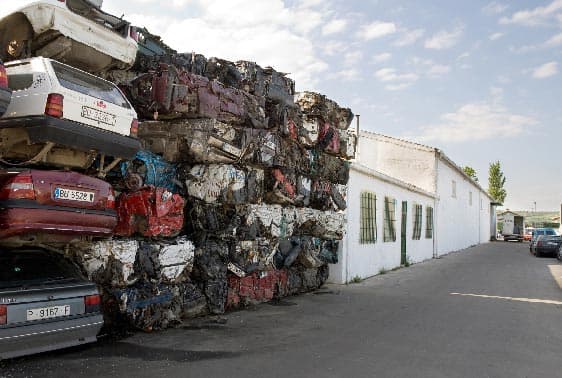 Cuando el vehículo ya carece de piezas reutilizables, es llevado a nuestra zona de prensado, para su posterior retirada por el gestor correspondiente y así finalizar el proceso asegurando así la gestión ecológica de dicho vehículo.